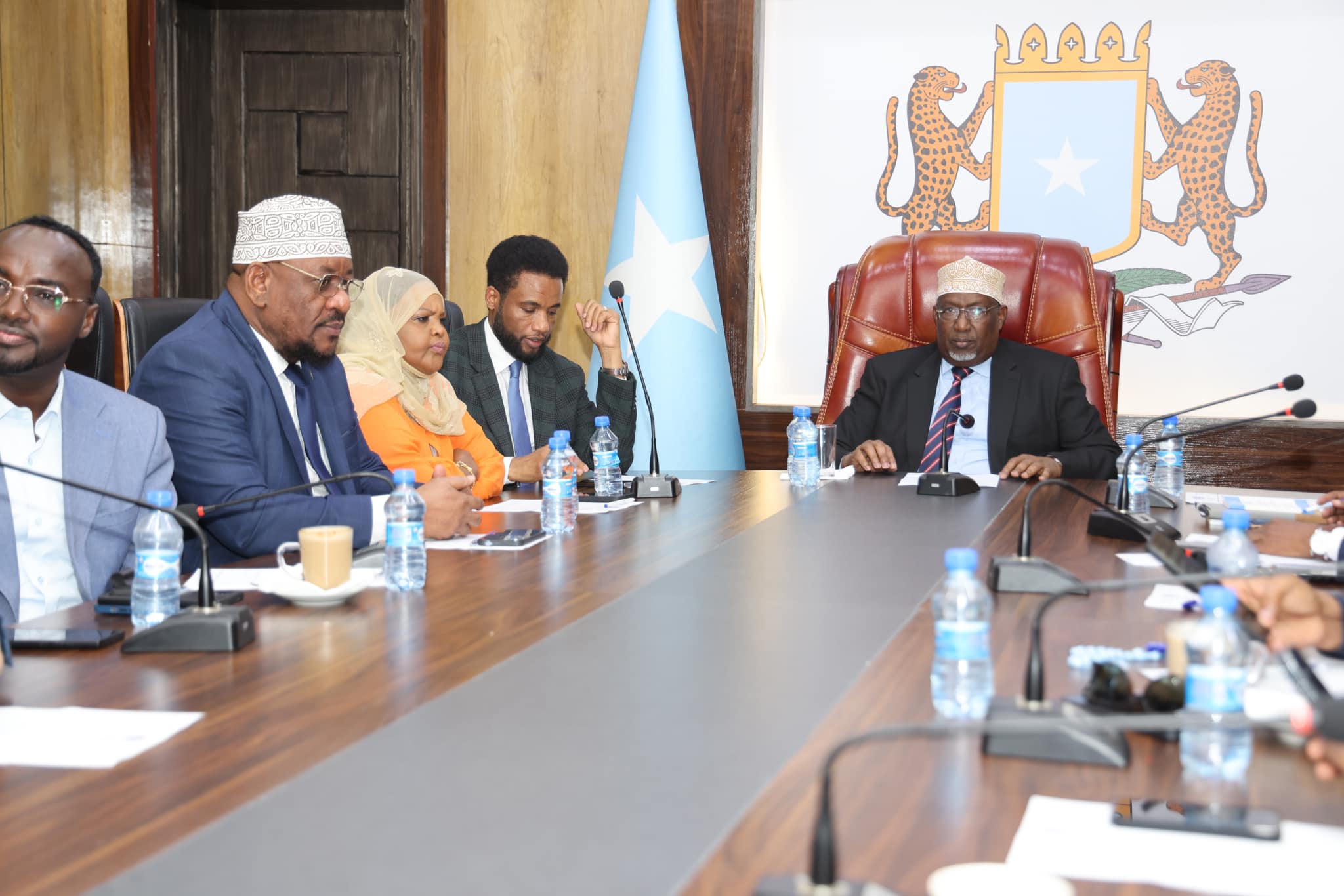 Mogadishu, Somalia — 20 February 2025: The Speaker of the House of the People of the Federal Parliament of Somalia, H.E. Sheikh Aden Mohamed Nur (Madoobe), chaired a meeting of the Standing Committee at the Speaker’s Office and Committees headquarters in Villa Hargeisa, Mogadishu. The session brought together the leadership of the Standing Committees to deliberate on priority issues concerning the House’s mandate and to review ways of advancing parliamentary activities.