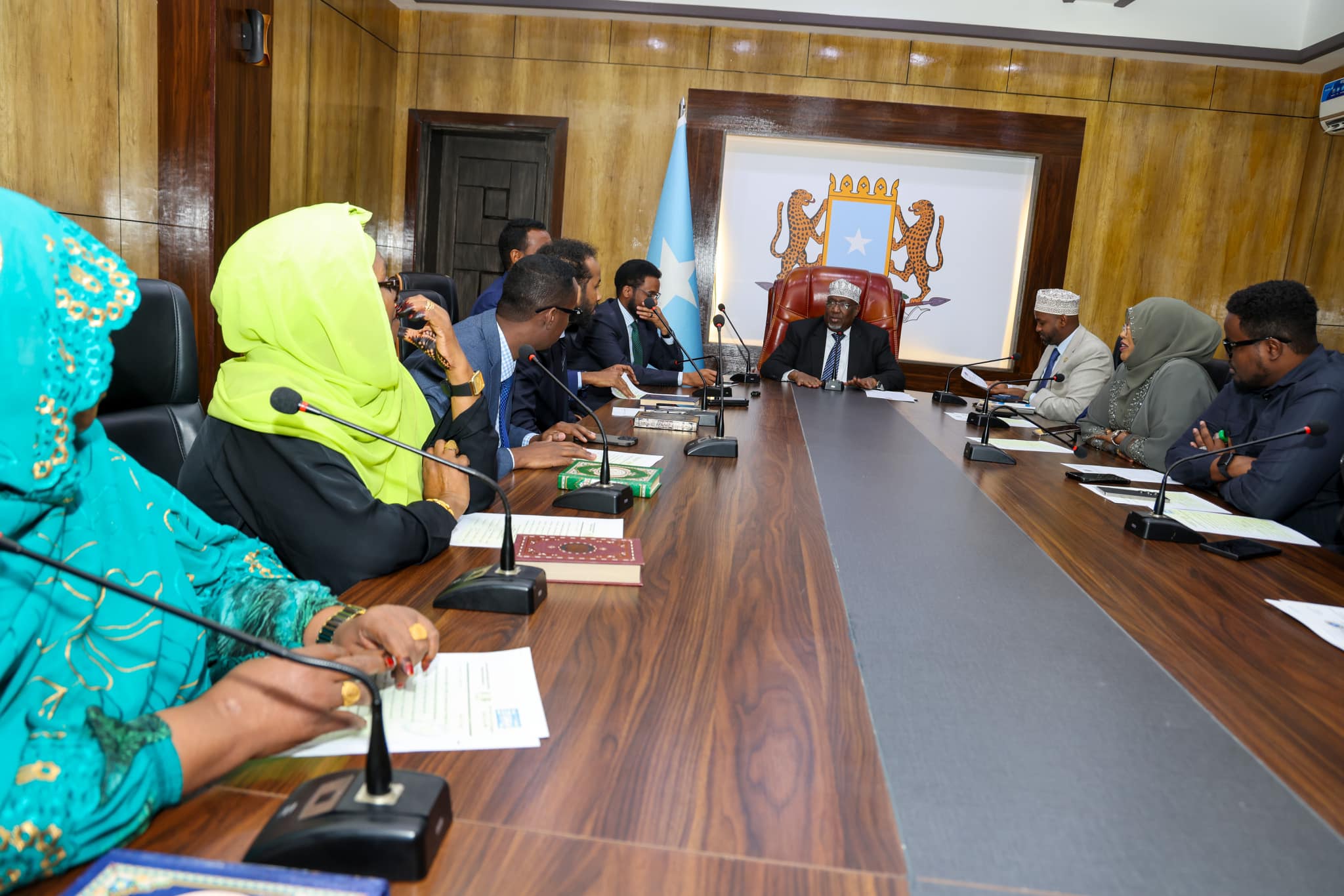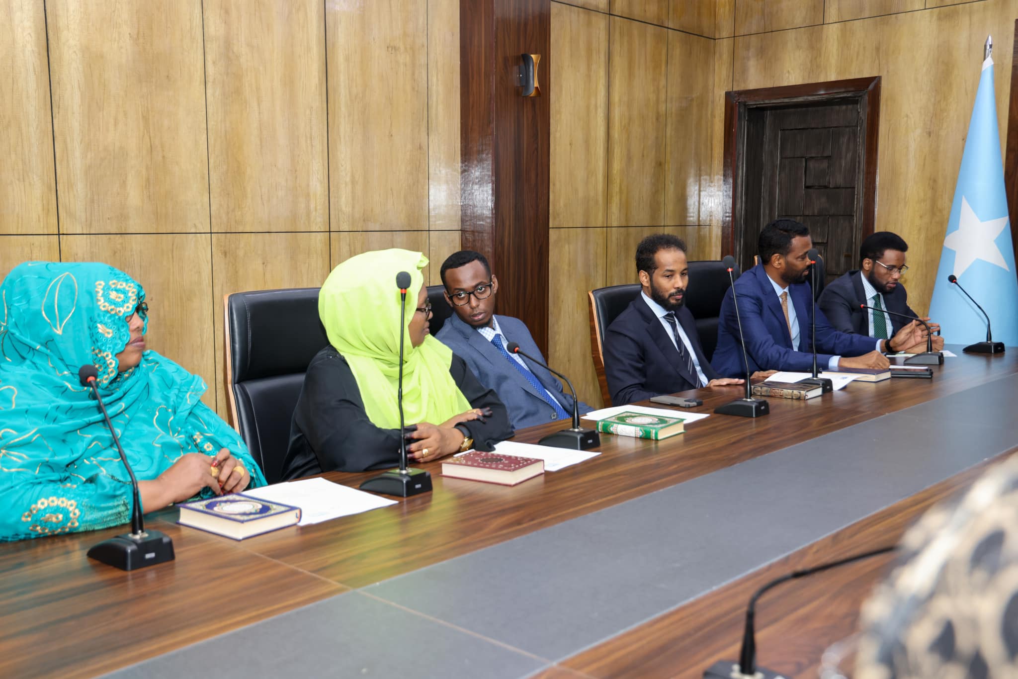 Mogadishu, Somalia – 20 March 2025: The Speaker of the House of the People, H.E. Sheikh Aden Mohamed Nur (Madoobe), chaired an extraordinary meeting of the Standing Committee at Villa Hargeisa. The agenda was the swearing-in of several newly appointed cabinet members. The oath of office was administered by the Chief Whip of the House of the People, MP Mohamed Abdullahi Hassan (Nuh), in compliance with constitutional and parliamentary procedure. The Speaker congratulated the new ministers and urged them to serve with honesty, transparency, and integrity.